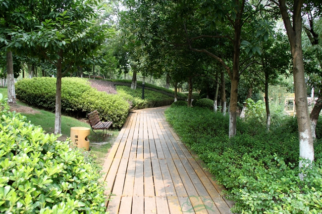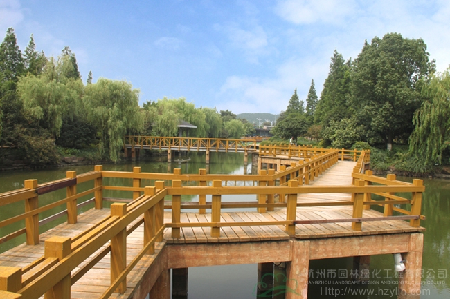 长兴甘家河北岸环境景观工程总面积5万平方米,施工内容包括亭、廊、桥、园路、广场、水系驳岸、公厕、管理房、水电安装、土方及绿化种植等大型综合性园林绿化工程。