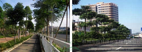 眼前的这条道路开阔大气、绿色生态,而当初施工时,却面临着很多难题。该项目定位较高,工期短,交叉施工严重,更经历了滨海的台风季节天气,所以施工中对施工工序组织、材料组织及机械劳动力的组织显得尤为重要;由于施工范围处于交通繁忙的205国道深圳段,对施工现场车辆的疏导及路边作业的围护等的要求都需严格把控;为了保证景观效果,对苗木的要求比较高,很多假植的苗木需要用保鲜的方法长途运载到施工现场进行种植。“施工中面临的各种不利因素不但增加了工程成本,更加大了施工难度,但在项目部全体人员工的共同努力下,最终克服种种困难,圆满完成了任务,展现了杭州市园林绿化工程有限公司优质高效、创新进取的企业形象,受到各方的一致好评。”徐向明的一番简短话语,却让我们感受到了施工期间的诸多辛苦。