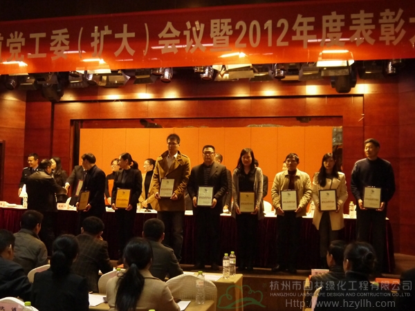会议重要议程之一,宣读2012年经济工作表彰决定,其中,杭州园林荣获优秀建筑企业、国家高新技术企业、杭州市著名商标、2011年度全市服务业先进企业等称号,同时,公司董事长吴光洪获得浙江省中小企业优秀企业家荣誉受到表彰。