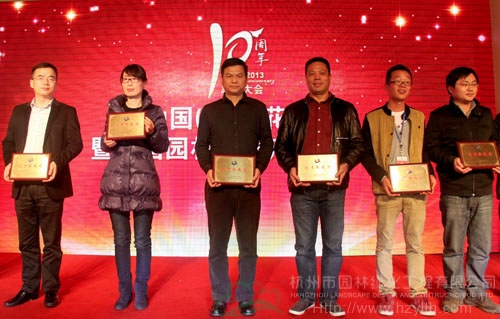 大会揭晓并颁发了“突出贡献奖”、“贡献奖”、“最佳合作伙伴奖”、“2013年优秀参展奖”、“2013年产品金奖”等多个奖项,以此表彰一批多年来为中国(萧山)花木节的成功举办做出积极贡献的个人和单位。其中,杭州市园林绿化工程有限公司荣获“最佳合作伙伴奖”、“2013年优秀参展奖”,参展的产品“红宝石”紫薇和“火炼金丹”桂花荣获“2013年优秀产品奖”,总经理张炎良上台领取了奖牌。