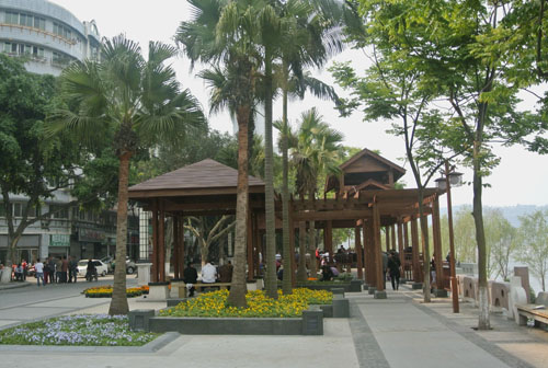 经过近半年的不懈努力,如今,这里的景观效果已初见成效,生态自然的园林美景,浓郁厚重的人文气息,使这里再次成为酒城泸州的一处标志性景观,成为广大市民的一处休闲乐园。站在高处的建筑上往下看,新建成的馆驿嘴广场犹如一艘动感十足的航船,迎风破浪,向着江心直行而去;而广场上无数的游人,则如船上的乘客,悠闲惬意地欣赏着江中的美景。