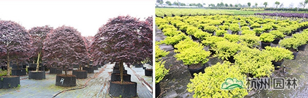 海宁俄乐冈苗木繁育技术有限公司是外商独资公司,由美国俄勒冈历史最悠久的几家苗圃和投资商共同创建。基地的苗木引种自美国俄勒冈,目前有160多个品种,主打彩叶树种,由美国专家团队按照严格的美国标准精心管理和培育。走进苗圃,清一色的容器苗整齐排列,同一个品种的苗木规格基本相同,整个苗圃显得很干净,与国内许多以地栽苗为主的苗圃有很大区别。由于很多苗木还处于小苗培育阶段,看不出明显的景观效果,但从基地负责人的讲解和基地现场的建设情况,却可以感受到美国人对产品培育的高标准和严要求。