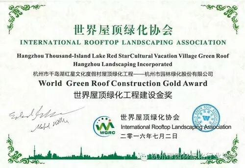 近日,在云南昆明召开的2016世界生态城市与屋顶绿化大会上,协会会员企业——时搏在线开户承建的杭州市千岛湖红星文化度假村屋顶绿化工程荣获“世界屋顶绿化工程建设金奖”。