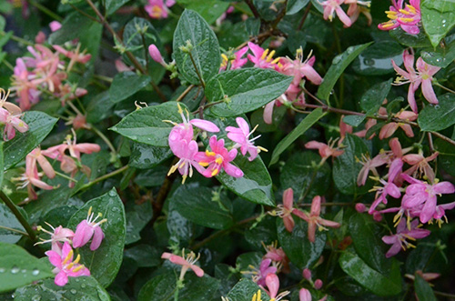 我是忍冬科忍冬属植物,落叶灌木,新叶嫩绿,老叶墨绿色泛蓝色,花粉红色,花期4-5月,浆果亮红色,果期9-10月。因其花色美丽,着花浓密,耐修剪,易于养护,可在混合花境中作为中后层次的植物材料使用。 看我这么秀美,还不带我走!