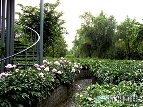 芍药迷宫局部,可通过种植筐的边缘设置,形成蜿蜒曲折的园路。
