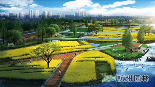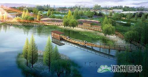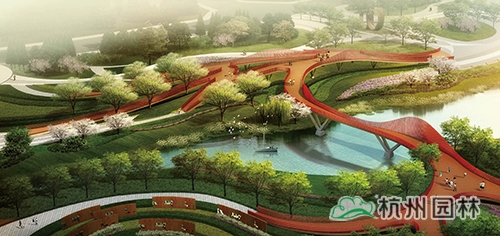 乐活园艺主题区:以家庭园艺花园为主,是公园的圩田湿地体验中心,水道如巷,河汊如网的圩田农艺景观,呈现出田园牧歌般的意境。包含飘带走廊、水荡花田等景点。