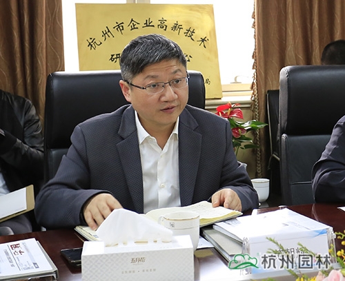 范区长在听取情况汇报后,首先肯定了杭州园林近年来取得的成绩,同时指出,作为多家行业协会的会长单位,杭州园林应进一步巩固行业地位,引领行业发展,并创新进取,争取打造更多优质样板工程,助力江干城市园林建设,并守正创新,为江干区的经济发展做出积极贡献。