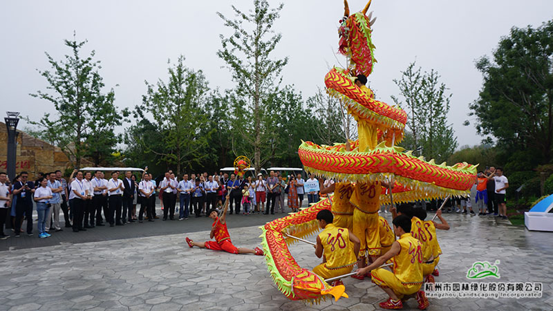 在宁波城市主题日活动现场还进行了奉化布龙非遗文化表演。在浙江园主入口,只见龙在飞腾,人在翻舞,龙身迎风,呼呼有声,恰似蛟龙出海,带来翻江倒海的磅礴气势,令人屏息凝神,目不暇接。这些舞龙的少年来自于奉化高级中学舞龙队,他们曾在2010年浙江省第二届乡村舞龙大赛中获得金奖。