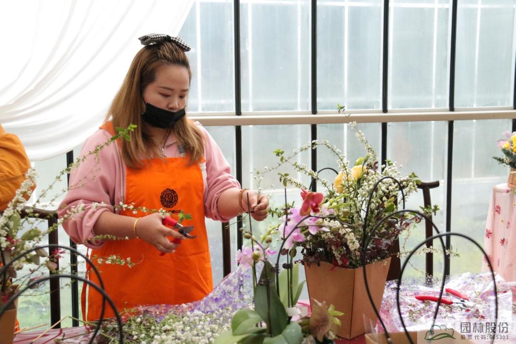 随后,花艺师从花材的介绍,插花工具的选择和使用,到插花的修剪、不同花材造型制作等,用通俗易懂的语言向大家讲述插花技巧。