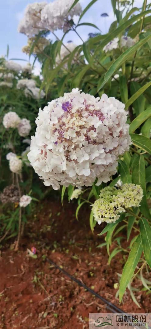 ▲参会成员参观绣球花生产基地
