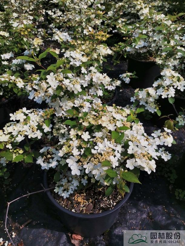 忍冬科荚蒾属,落叶灌木,树姿舒展。花序半球形,全为不孕花,开花时满树白花犹如积雪压枝,高洁素雅,花谢后则绿叶如碧,无论花叶均具有较好的景观效果。生长强健,喜欢散射光环境,适合工程应用或庭院观赏。