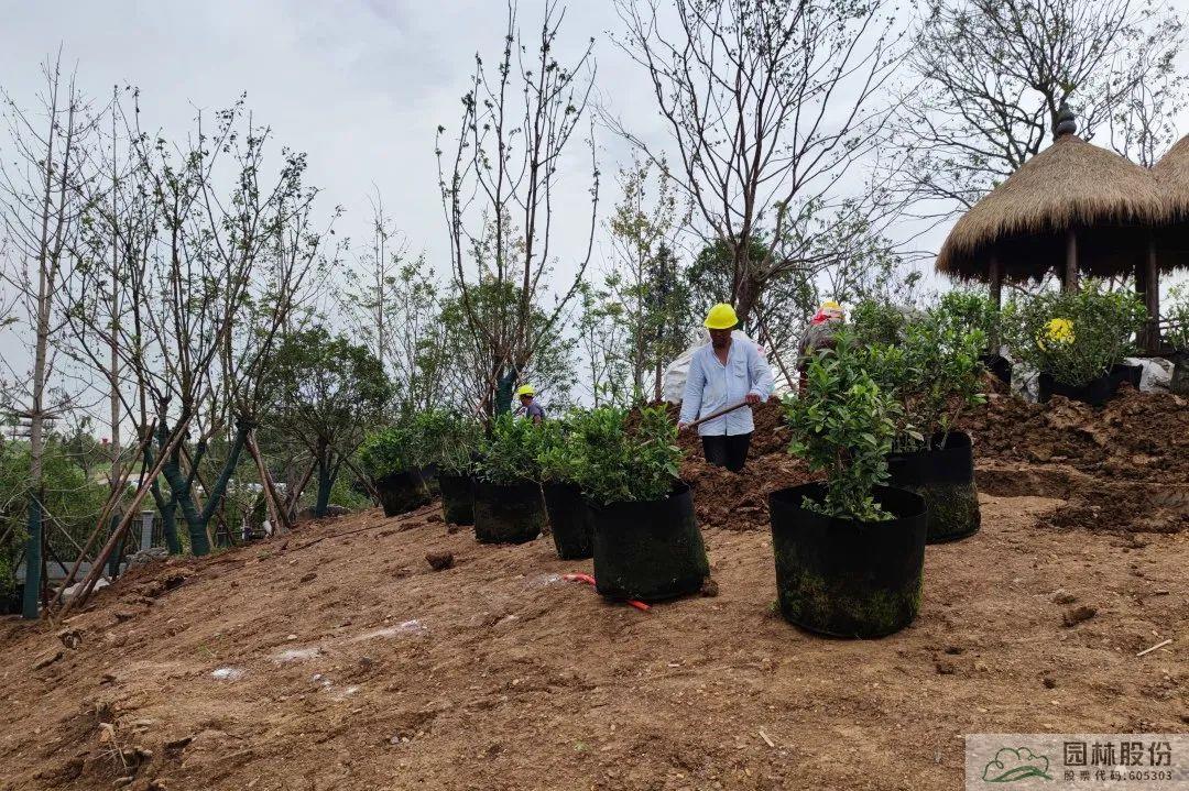 为提高苗木成活率,确保展园景观效果,通过提前容器化处理、加大加固土球、喷施抑制蒸腾剂等多种途径,为实现展园设计思想的精准表达与完美落地打下基础。