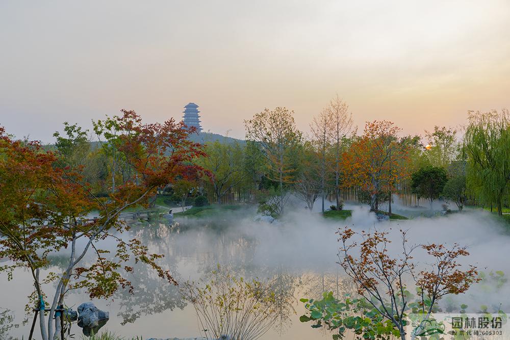 为保证园内水质干净清澈,水系采用了两套循环系统。一套是内循环,将湖里的水抽到山顶上,沿溪流而下,中间逐级补水;由于湖的体量较大,湖内单独设一套循环系统,保证水体流动,同时在湖里放养了螺丝、杂鱼,周边种植水生植物,确保水质效果。)