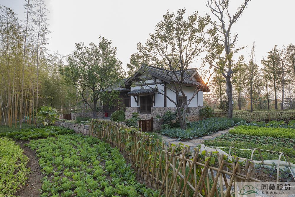 听完美丽浙江的精彩故事,继续前行。推开后院半掩的木门,园内一畦畦绿油油的香菜、紫甘蓝、大白菜、莴苣、芹菜、小葱等长势喜人,山楂、石榴、香泡、柿子等果子在枝头飘散着淡淡的果香,银杏、枫树、黄栌等色叶树红黄交错,乡土植物的配置强化了民居空间的山地氛围和景观特色,生态菜园景观勾勒出钱塘人家的现代田园风情。