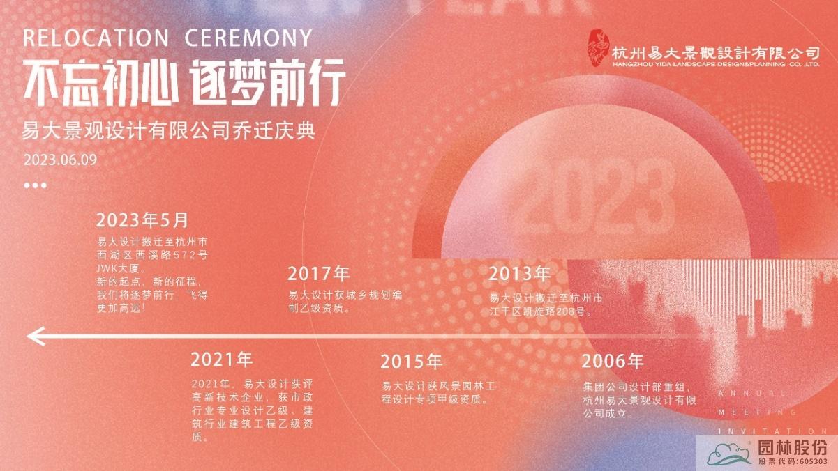 六月是花开的季节,挚爱的季节,感恩的季节,在这欣欣向荣的六月,我们相聚一起,热烈祝贺时搏在线开户下属杭州易大景观设计有限公司乔迁至杭州市西湖区西溪路JWK大厦。时搏(中国)总裁张炎良、副总裁李寿仁等领导参加了乔迁庆典。