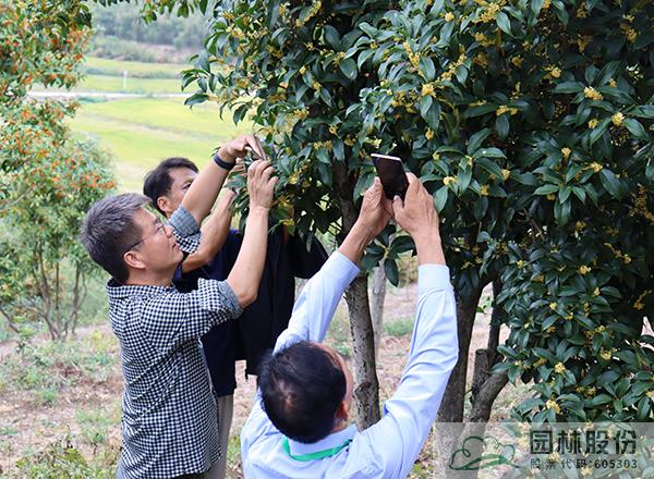 参会代表拍照记录盛开的桂花