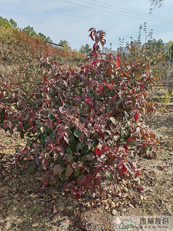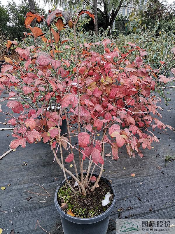 忍冬科荚蒾属,丛生性落叶灌木,高可达4米。花白色,花期4-5月,果大而红,观果期长,可从7月持续到10月。叶掌状,通常三裂,秋季一般9-10月叶色开始转红,11月达到最佳效果。欧洲荚蒾是荚蒾属中秋色叶效果较好的一个种类,红叶期来得比较早,且叶色最为鲜艳。该种病虫害少,适应性强,耐寒,北方室外能正常生长。生长速度快,适合工程应用或庭院观赏。