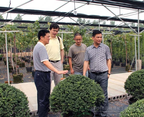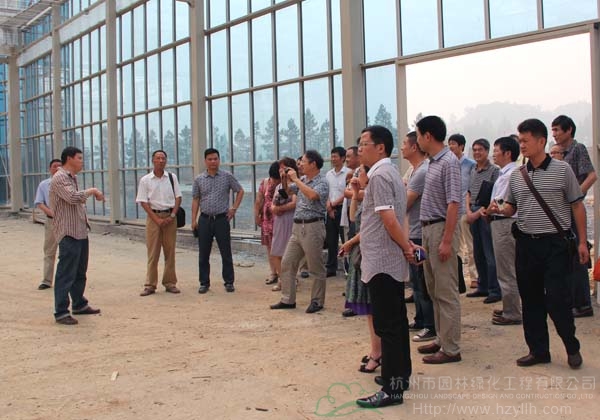会议开始之前,在“以兴林富民为重点,以项目建设为抓手,加快推进林业产业、科技推广、林木种苗事业发展”指导思想的指引下,杨文钟副局长和与会代表一起参观考察了杭州市园林绿化工程有限公司的“园艺设施农业示范园——青山湖•花园中心”项目现场,详细了解了智能玻璃温室、钢架荫棚、容器苗区等主要生产设施设备和附属配套设施的建设情况。公司总经理张炎良、副总经理丁旭升、研发中心经理沈柏春陪同参观。