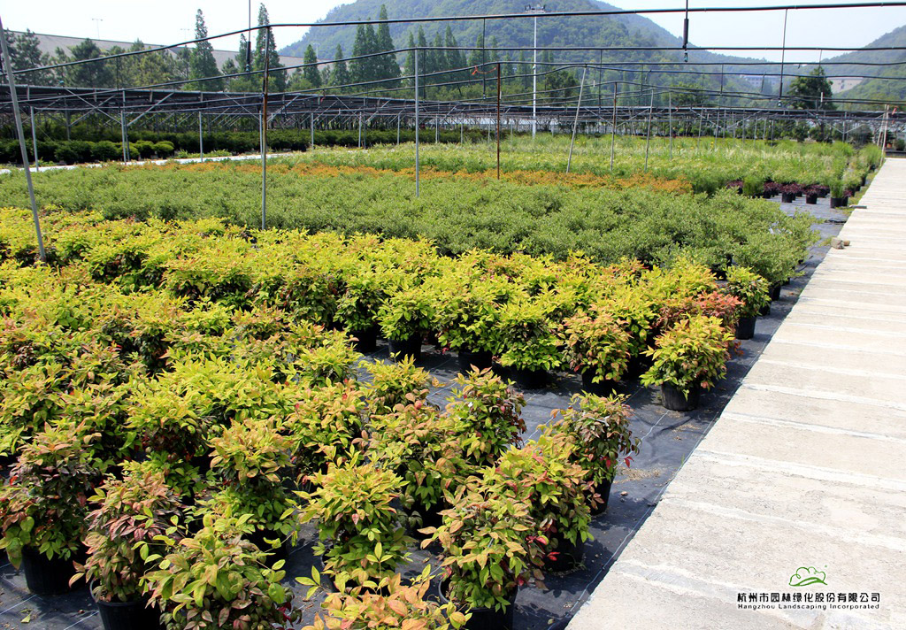 旗下青山湖·花园中心占地230余亩,拥有10000平米实景花园展示区,4000平米玻璃温室室内园艺产品展示区;40000平米户外苗木展示区;并在余杭径山配套3000余亩容器苗生产科研基地,生产近300余种精品花境容器苗产品。